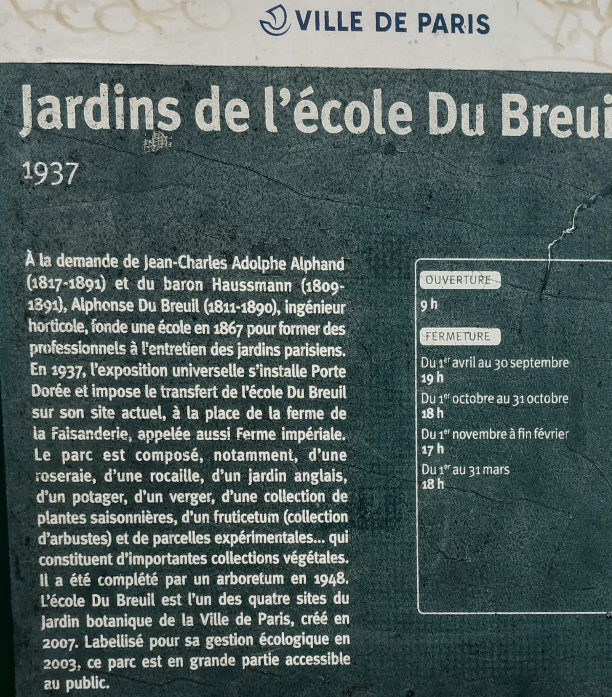 École des jardins de la ville de Paris. Les jardins sont publics et méritent la visite. Il y a aussi un intéressant arboretum sur le trottoir d’en face. Animations certains jours. Accueil sympathique.